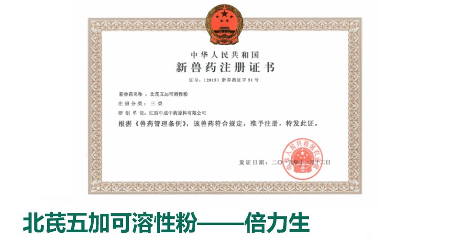 國家三類新獸藥?箲(yīng)激、增強免疫用方藥。