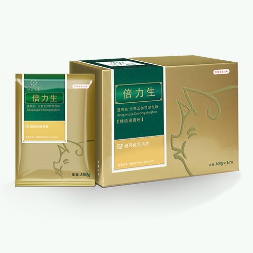 【處方】 黃芪、刺五加。 【性狀】本品為棕黃色至棕褐色粉末;味甜,微苦。 【功能】增強動物機體免疫功能。 【主治】免疫功能低下。